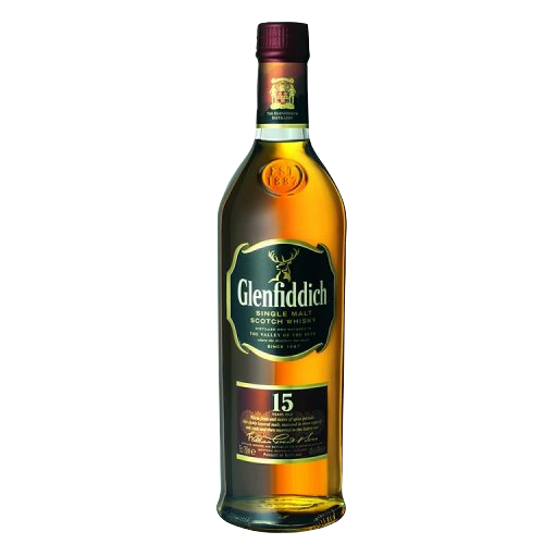 GLENFIDDICH es una destilería de whisky escocés de malta situada en Dufftown, Scotland, en la región de Speyside. Pertenece a William Grant & Sons. La presentación de 15 años es un whisky de malta verdaderamente especial que ejemplifica tradición de innovación de la familia. Sus sabores cálidos y picantes son creados usando una técnica iniciada por nuestro quinto Maestro de malta, David Stewart, y continuaron hasta nuestros días.